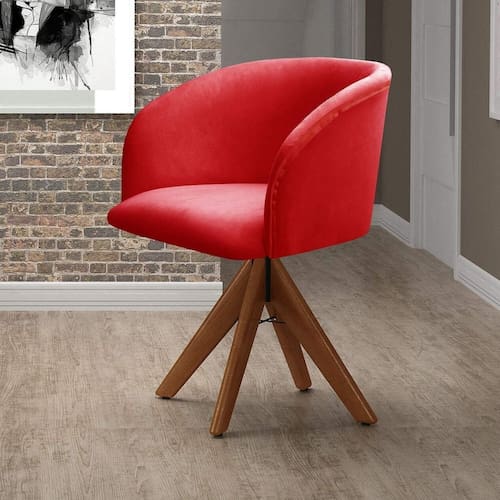 EM CASO DE DANO, ESCREVA O PROBLEMA NO DOCUMENTO EM QUE DER A ASSINATURA. Acompanha Almofadas extras: Não Acompanha Puff: Não Almofada do assento: Não Possui Almofada do encosto: Não Possui Altura do assento até o chão: 80 cm Altura do Encosto: 35 cm Altura dos Pés: 40 cm Ambiente Principal: Sala de Estar Complexidade da Montagem: Baixa: pode ser montado por uma pessoa sozinha Cor: Vermelho Cor do Produto: Vermelho Design Assinado: Não Encosto para a Cabeça: Não Estampado: Não Extensível: Não Itens Inclusos: 1 poltrona + 4 Pés Enroscáveis Material dos Pés: Madeira Eucalípto Modelo de Poltrona: Giratório Necessita Montagem: Sim Origem do Produto: Nacional Peso: 13 kg Possui Percintas Elásticas: Sim Possui Pés: 04 Possui Rodízio: Não Recomendações de Uso, Manutenção e Limpeza: É necessário que haja uma ou mais pessoas no local para receber, desembalar, e conferir o produto. Não nos responsabilizamos por montagem e desmontagem, transporte por escadas/elevadores/guincho.Eventuais despesas é de responsabilidade do cliente.Confira as dimensões deste produto e certifique-se de que passará normalmente por elevadores/portas/corredor de seu imóvel.Todos os produtos são revisados antes do envio. Só assine o documento depois de abrir a embalagem e conferir Em caso de dano escreva o problema no documento em que der a assinatura, só assim poderemos mostrar à transportadora que o motorista não cuidou bem da carga, ela desconta do motorista e me paga para consertar para você. OBS: Se optar pela devolução ou troca, devem ser utilizadas embalagens capazes de proteger o produto.Não rasgue a embalagem antes de ter certeza que ficará com tudo. Sistema de Montagem: Apenas Colocar os pés Suporta Até (kg): 120 kg Tecido Predominante: Suede Tipo de Assento: Fixo Tipo de Encosto: Fixo Tipo de Poltrona: Decorativa