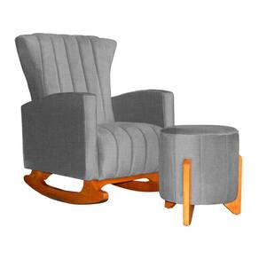 Poltrona Balanço C/ Puff Melinda Linho Cinza - LM DECOR