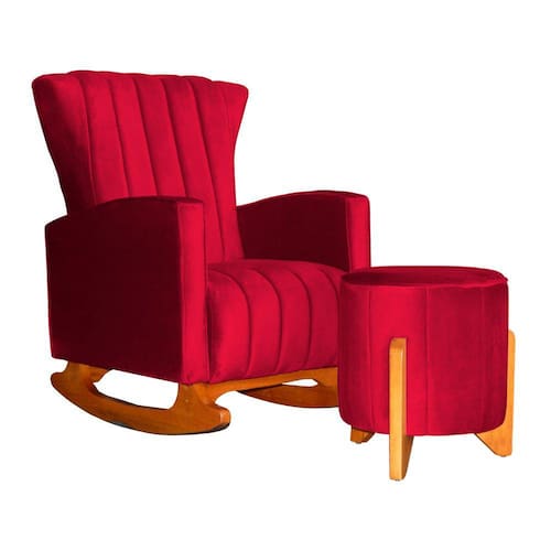 Poltrona Balanço C/ Puff Melinda Veludo Vermelho - LM DECOR