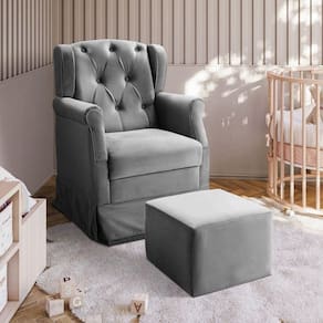 Poltrona Balanço Ternura + Puff Em Veludo - Star Confort Chumbo A poltrona amamentacao, proporciona todo o conforto e aconchego que a familia precisa nesta fase tao especial, e encanta pelo seu estilo sofisticado. Feita com materia-prima de alta qualidade a poltrona possui estofado revestido por tecido de toque suave que proporciona aconchego para os momentos de amamentacao. A poltrona possui um balanco suave em sua base, e um encosto alto com espuma de excelente densidade e estrutura solida de madeira. Caracteristicas: Estrutura: fabricado com Madeira Eucalipto Reflorestada, e alguns detalhes em MDF; Assento: Espuma D23; Encosto: Espuma D12; Braco: Espuma D14; Base/Pes: Madeira Eucalipto Reflorestada; Peso Suportado: 110 Kg; Necessita de Montagem: Nao