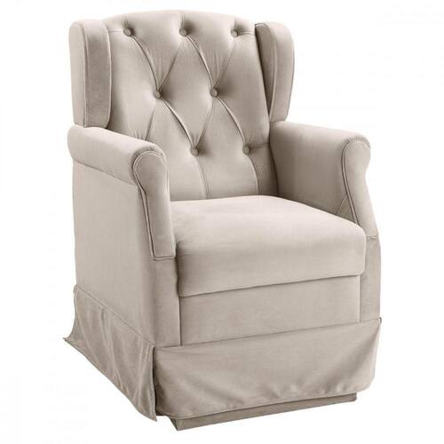 Poltrona Balanço Ternura Veludo - Star Confort Bege A poltrona amamentacao, proporciona todo o conforto e aconchego que a familia precisa nesta fase tao especial, e encanta pelo seu estilo sofisticado. Feita com materia-prima de alta qualidade a poltrona possui estofado revestido por tecido de toque suave que proporciona aconchego para os momentos de amamentacao. A poltrona possui um balanco suave em sua base, e um encosto alto com espuma de excelente densidade e estrutura solida de madeira. Caracteristicas: Estrutura: fabricado com Madeira Eucalipto Reflorestada, e alguns detalhes em MDF; Assento: Espuma D23; Encosto: Espuma D12; Braco: Espuma D14; Base/Pes: Madeira Eucalipto Reflorestada; Peso Suportado: 110 Kg; Necessita de Montagem: Nao
