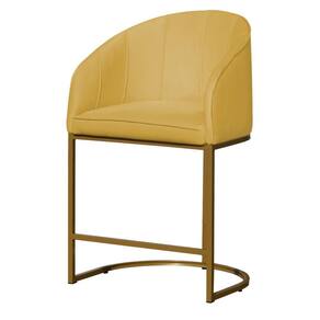 Poltrona Banqueta Decorativa Base Metal Mia Suede Amarelo - LM DECOR