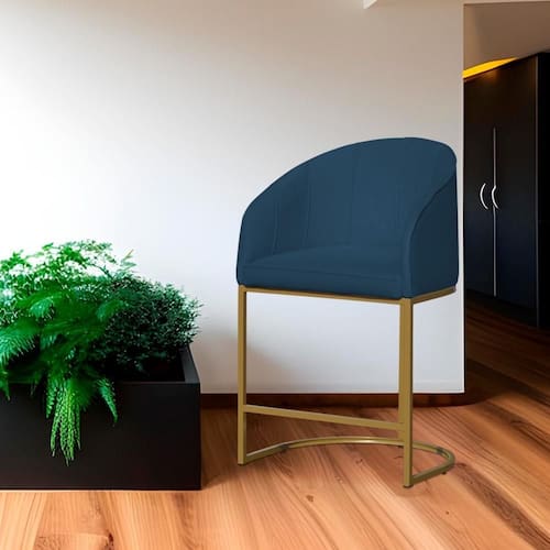 Poltrona Banqueta Decorativa Base Metal Mia Suede Azul Royal - LM DECOR