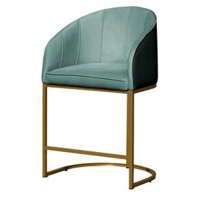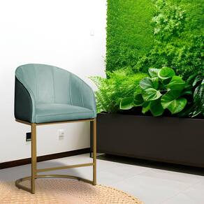 Poltrona Banqueta Decorativa Estofada Mia Veludo Base Metal Dourada - Estopar - Verde Claro
