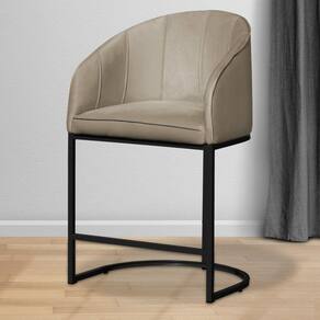 Poltrona Banqueta Decorativa Luxo Mia Base Metal Preta Veludo - Estopar - Bege
