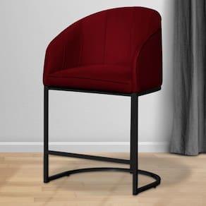 Poltrona Banqueta Decorativa Luxo Mia Base Metal Preta Veludo - Estopar - Vermelho