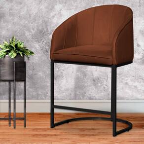 Poltrona Banqueta Decorativa Luxo Mia Base Metal Preta Veludo - Estopar - Laranja