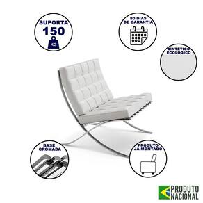 Poltrona Barcelona Cromada Sintético Branco - Cor: Branco Poltrona Barcelona Cromada Sintético BrancoA poltrona Barcelona, além de muito estilosa e conhecida pelo seu design impecável possui uma história muito interessante. Ela foi desenhada pelo arquiteto e diretor de Bauhaus, Ludwig Mies Van der Rohe, junto com sua sócia Lilly Reich. A poltrona foi projetada visando a harmonia do design e simbolizando um trono.Ela é imponente quando em ambientes de trabalho como recepções e, também, traz charme e elegância para a casa. A poltrona reflete o seu ar moderno e atual até hoje, mesmo tendo sido criada há 81 anos. Atualmente, existem apenas dois modelos feitas pelo arquiteto que estão mantidas na Espanha, no Pavilhão Alemão.CARACTERISTICASTipo: PoltronaModelo: BarcelonaCor: BrancoDIMENSÕES DO PRODUTOAltura: 78cmLargura: 78cmComprimento: 75cmOBSERVAÇÃOMontagem: Necessário apenas encaixar o assento na estrutura.Limpeza: utilizar um pano macio levemente úmidoPESO SUPORTADO150 quilosGARANTIA: 90 diasAs imagens são meramente ilustrativas e podem sofrer variações de cor e pequenos detalhes de acordo com o seu monitor, iluminação do ambiente e até mesmo a sua percepção visual.Poltrona Barcelona Cromada SintÃtico Branco Marca: Casa Benne