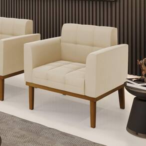 Poltrona Base De Madeira Fixa Castanho Elisa Suede D03 - D\`rossi Cor Bege