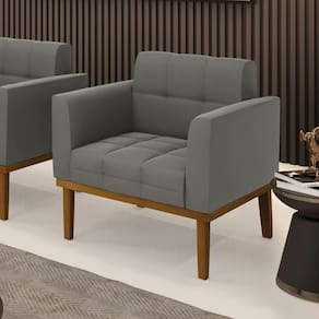 Poltrona Base De Madeira Fixa Castanho Elisa Suede D03 - D\`rossi Cor Grafite