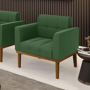 Poltrona Base De Madeira Fixa Castanho Elisa Suede D03 - D\\'rossi Cor Verde
