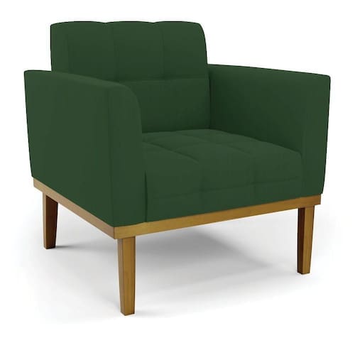 Poltrona Base De Madeira Fixa Castanho Elisa Veludo D03 - D'rossi Cor Verde