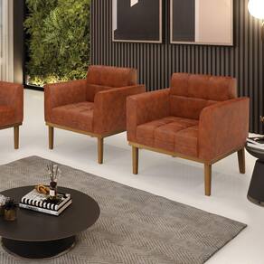 Você gosta de colecionar vários momentos memoráveis com sua família e amigos? Que tal recebê-los, com móveis de altíssima qualidade que só a D'Rossi tem? A Poltrona Elisa é adequada para você! Seu design retrô é a grande tendência do momento. Pode ser usada em diversos espaços da casa, em salas, hall de entrada, quartos, cozinhas, varanda, sacada, escritório, dentre outros. Contém as seguintes características: A estrutura é feita de madeira de Eucalipto 100% de reflorestamento, e a Base de Madeira Fixa Castanho, além de ser resistente e durável, suporta em média até 120 kg. Assento, encosto e braços, contém enchimento de espuma D-23 e é estofada em tecido Corano, que oferece muito conforto e resistência ao sentar, com aquela sensação de maciez e aconchego. Possui também, detalhes de costura no encosto e assento, resultando em um acabamento impecável, conferindo muito mais valor e elegância ao seu espaço. Para complementar a decoração com essa linda poltrona, a dica é utilizar mantas, almofadas ou vasinho de flor. E pronto, seu cantinho estará perfeito para descansar e relaxar! Aqui, você encontra várias opções, para que seus amigos e familiares se sintam acolhidos. Garanta já seu Kit 2 Poltronas..