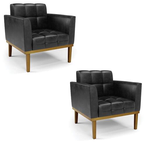 Você gosta de colecionar vários momentos memoráveis com sua família e amigos? Que tal recebê-los, com móveis de altíssima qualidade que só a D'Rossi tem? A Poltrona Elisa é adequada para você! Seu design retrô é a grande tendência do momento. Pode ser usada em diversos espaços da casa, em salas, hall de entrada, quartos, cozinhas, varanda, sacada, escritório, dentre outros. Contém as seguintes características: A estrutura é feita de madeira de Eucalipto 100% de reflorestamento, e a Base de Madeira Fixa Castanho, além de ser resistente e durável, suporta em média até 120 kg. Assento, encosto e braços, contém enchimento de espuma D-23 e é estofada em tecido Corano, no tom Preto, que oferece muito conforto e resistência ao sentar, com aquela sensação de maciez e aconchego. Possui também, detalhes de costura no encosto e assento, resultando em um acabamento impecável, conferindo muito mais valor e elegância ao seu espaço. Para complementar a decoração com essa linda poltrona, a dica é utilizar mantas, almofadas ou vasinho de flor. E pronto, seu cantinho estará perfeito para descansar e relaxar! Aqui, você encontra várias opções, para que seus amigos e familiares se sintam acolhidos. Garanta já seu Kit 2 Poltronas..