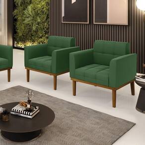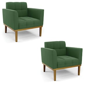 Poltrona Base De Madeira Fixa Castanho Kit 2 Elisa Suede D03 - D\\'rossi Cor Verde