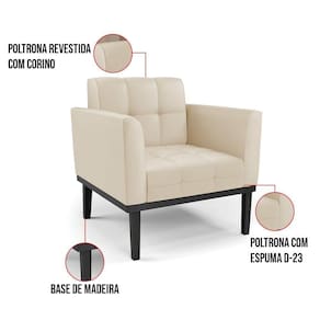 Você gosta de colecionar vários momentos memoráveis com sua família e amigos? Que tal recebê-los, com móveis de altíssima qualidade que só a D'Rossi tem? A Poltrona Elisa é adequada para você! Seu design retrô é a grande tendência do momento. Pode ser usada em diversos espaços da casa, em salas, hall de entrada, quartos, cozinhas, varanda, sacada, escritório, dentre outros. Contém as seguintes características: A estrutura é feita de madeira de Eucalipto 100% de reflorestamento, e a Base de Madeira Fixa Preto, além de ser resistente e durável, suporta em média até 120 kg. Assento, encosto e braços, contém enchimento de espuma D-23 e é estofada em tecido Corino, que oferece muito conforto e resistência ao sentar, com aquela sensação de maciez e aconchego. Possui também, detalhes de costura no encosto e assento, resultando em um acabamento impecável, conferindo muito mais valor e elegância ao seu espaço. Para complementar a decoração com essa linda poltrona, a dica é utilizar mantas, almofadas ou vasinho de flor. E pronto, seu cantinho estará perfeito para descansar e relaxar! Aqui, você encontra várias opções, para que seus amigos e familiares se sintam acolhidos. Garanta já sua Poltrona.