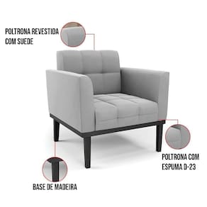 Você gosta de colecionar vários momentos memoráveis com sua família e amigos? Que tal recebê-los, com móveis de altíssima qualidade que só a D'Rossi tem? A Poltrona Elisa é adequada para você! Seu design retrô é a grande tendência do momento. Pode ser usada em diversos espaços da casa, em salas, hall de entrada, quartos, cozinhas, varanda, sacada, escritório, dentre outros. Contém as seguintes características: A estrutura é feita de madeira de Eucalipto 100% de reflorestamento, e a Base de Madeira Fixa Preto, além de ser resistente e durável, suporta em média até 120 kg. Assento, encosto e braços, contém enchimento de espuma D-23 e é estofada em tecido Suede, que oferece muito conforto e resistência ao sentar, com aquela sensação de maciez e aconchego. Possui também, detalhes de costura no encosto e assento, resultando em um acabamento impecável, conferindo muito mais valor e elegância ao seu espaço. Para complementar a decoração com essa linda poltrona, a dica é utilizar mantas, almofadas ou vasinho de flor. E pronto, seu cantinho estará perfeito para descansar e relaxar! Aqui, você encontra várias opções, para que seus amigos e familiares se sintam acolhidos. Garanta já sua Poltrona.
