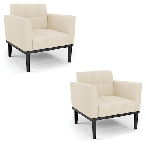Você gosta de colecionar vários momentos memoráveis com sua família e amigos? Que tal recebê-los, com móveis de altíssima qualidade que só a D'Rossi tem? A Poltrona Elisa é adequada para você! Seu design retrô é a grande tendência do momento. Pode ser usada em diversos espaços da casa, em salas, hall de entrada, quartos, cozinhas, varanda, sacada, escritório, dentre outros. Contém as seguintes características: A estrutura é feita de madeira de Eucalipto 100% de reflorestamento, e a Base de Madeira Fixa Preto, além de ser resistente e durável, suporta em média até 120 kg. Assento, encosto e braços, contém enchimento de espuma D-23 e é estofada em tecido Linho no tom Bege, que oferece muito conforto e resistência ao sentar, com aquela sensação de maciez e aconchego. Possui também, detalhes de costura no encosto e assento, resultando em um acabamento impecável, conferindo muito mais valor e elegância ao seu espaço. Para complementar a decoração com essa linda poltrona, a dica é utilizar mantas, almofadas ou vasinho de flor. E pronto, seu cantinho estará perfeito para descansar e relaxar! Aqui, você encontra várias opções, para que seus amigos e familiares se sintam acolhidos. Garanta já seu Kit 2 Poltronas..
