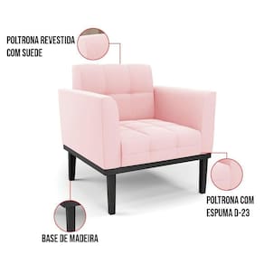 Poltrona Base De Madeira Fixa Preto Kit 2 Elisa Suede D03 - D'rossi Cor Rosa Bebê