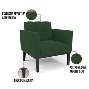Você gosta de colecionar vários momentos memoráveis com sua família e amigos? Que tal recebê-los, com móveis de altíssima qualidade que só a D'Rossi tem? A Poltrona Elisa é adequada para você! Seu design retrô é a grande tendência do momento. Pode ser usada em diversos espaços da casa, em salas, hall de entrada, quartos, cozinhas, varanda, sacada, escritório, dentre outros. Contém as seguintes características: A estrutura é feita de madeira de Eucalipto 100% de reflorestamento, e a Base de Madeira Fixa Preto, além de ser resistente e durável, suporta em média até 120 kg. Assento, encosto e braços, contém enchimento de espuma D-23 e é estofada em tecido Veludo, que oferece muito conforto e resistência ao sentar, com aquela sensação de maciez e aconchego. Possui também, detalhes de costura no encosto e assento, resultando em um acabamento impecável, conferindo muito mais valor e elegância ao seu espaço. Para complementar a decoração com essa linda poltrona, a dica é utilizar mantas, almofadas ou vasinho de flor. E pronto, seu cantinho estará perfeito para descansar e relaxar! Aqui, você encontra várias opções, para que seus amigos e familiares se sintam acolhidos. Garanta já seu Kit 2 Poltronas..