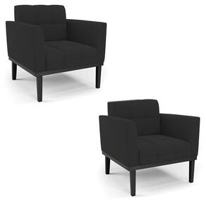 Você gosta de colecionar vários momentos memoráveis com sua família e amigos? Que tal recebê-los, com móveis de altíssima qualidade que só a D'Rossi tem? A Poltrona Elisa é adequada para você! Seu design retrô é a grande tendência do momento. Pode ser usada em diversos espaços da casa, em salas, hall de entrada, quartos, cozinhas, varanda, sacada, escritório, dentre outros. Contém as seguintes características: A estrutura é feita de madeira de Eucalipto 100% de reflorestamento, e a Base de Madeira Fixa Preto, além de ser resistente e durável, suporta em média até 120 kg. Assento, encosto e braços, contém enchimento de espuma D-23 e é estofada em tecido Veludo, no tom Preto, que oferece muito conforto e resistência ao sentar, com aquela sensação de maciez e aconchego. Possui também, detalhes de costura no encosto e assento, resultando em um acabamento impecável, conferindo muito mais valor e elegância ao seu espaço. Para complementar a decoração com essa linda poltrona, a dica é utilizar mantas, almofadas ou vasinho de flor. E pronto, seu cantinho estará perfeito para descansar e relaxar! Aqui, você encontra várias opções, para que seus amigos e familiares se sintam acolhidos. Garanta já seu Kit 2 Poltronas..
