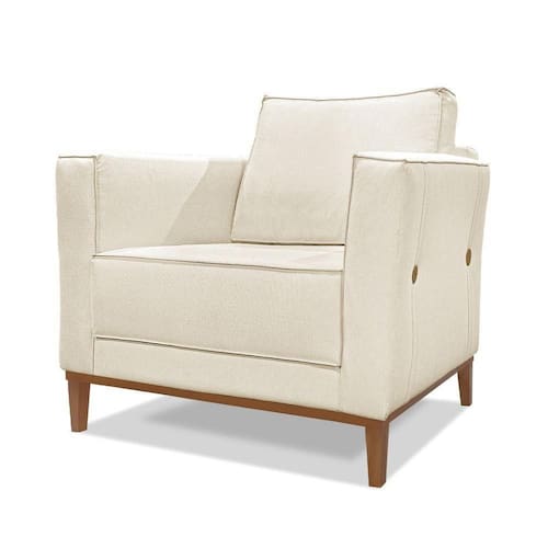 A Poltrona Grace é uma poltrona que combina elegância, conforto e durabilidade. Ela tem um design moderno e sofisticado, com pés em madeira maciça e revestimento em tecido Linho Rústico Areia, que harmonizam com qualquer ambiente. Ela é ideal para sala de estar, recepções ou qualquer outro espaço que você queira decorar com estilo e bom gosto. Ela tem uma estrutura em madeira maciça, que garante a resistência e a sustentabilidade do produto. Ela suporta até 100 Kg de peso, podendo ser utilizada por pessoas de diferentes biotipos. Ela tem um acabamento reforçado com espuma de qualidade no assento Fixo com percintas elásticas italiana, molas bonnel e espuma HR 28 e plumante em silicone, que oferece maciez e aconchego. Acompanha 1 almofada decorativa ( Enchimento fibra de silicone), costura italiana. Nas braças do lado externo contém botões em madeira cerejeira com altura de 15cm, cor mel. Tem pés em madeira maciça, que protegem o produto contra corrosão e desgaste. A Poltrona Grace é um produto de alta qualidade, beleza e funcionalidade. Ela é fácil de transportar, pois tem um peso leve e um tamanho compacto. A Poltrona Grace é um produto que vai fazer a diferença na sua decoração e no seu bem-estar. Ela vai trazer charme, conforto e durabilidade para o seu ambiente. Aproveite essa oferta e leve para casa uma poltrona de qualidade por um preço incrível. Essa é a sua chance de ter uma poltrona maravilhosa por um preço imperdível. Corra e garanta a sua antes que acabe o estoque!