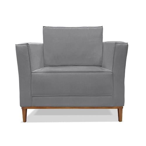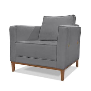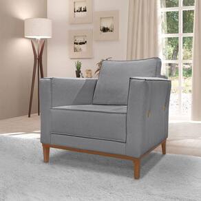 Poltrona Base De Madeira Sala De Estar Grace Linho S04 - D'rossi Cor Cinza