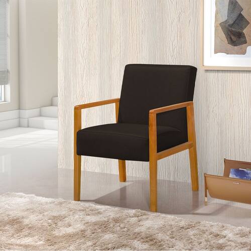 Poltrona Base em Madeira Maciça Decorativa Bora Bora Linho Marrom Escuro