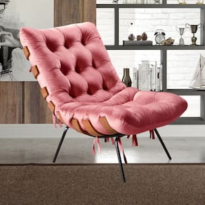 Produto seguro para até 120kg Acompanha Almofadas extras: Não Acompanha Puff: Não Almofada do assento: Não Possui Almofada do encosto: Não Possui Altura do assento até o chão: 50 Altura do Encosto: 85 Ambiente Principal: Sala de Estar Complexidade da Montagem: Baixa: pode ser montado por uma pessoa sozinha Cor: Rosa Cor do Produto: Rosa Design Assinado: Sim Encosto para a Cabeça: Não Estampado: Não Extensível: Não Itens Inclusos: 1 Poltrona, Pés Linha ou Coleção: Costela Material dos Pés: Ferro Modelo de Poltrona: Fixo Necessita Montagem: Sim Origem do Produto: Nacional Peso: 18 kg Possui Percintas Elásticas: Não Possui Pés: 02 Possui Rodízio: Não Recomendações de Uso, Manutenção e Limpeza: Limpeza e cuidados: pode ser utilizado aspirador de pó, escova com cerdas macias ou limpeza a seco. Não utilizar produtos químicos, abrasivos ou limpeza a vapor. Evitar exposição prolongada ao sol. Sistema de Montagem: Apenas Enroscar os pés Suporta Até (kg): 120 Tecido Predominante: Suede Tipo de Assento: Fixo Tipo de Encosto: Fixo Tipo de Poltrona: Decorativa