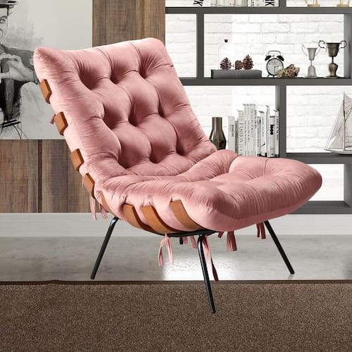Poltrona Base Fixa para Sala de Estar Costela Rose - Rosa