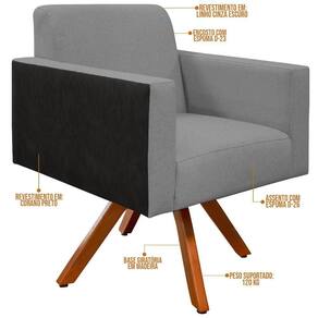As poltronas se tornaram peça chave na decoração moderna. Por isso a Poltrona Decorativa Base Giratória de Madeira Helô L02 Linho Cinza Escuro Couríssimo Preto - Lyam Decor é a melhor opção para abrilhantar ainda mais o seu espaço.