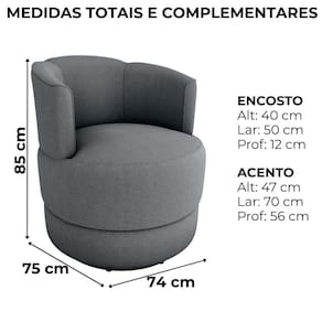 Madeira (Eucalipto de reflorestamento), Espuma e TecidoPoltrona Marselha, o conforto que gira com você! Design arredondado composta por estrutura em madeira de eucalipto de reflorestamento (com percintas elásticas) e base giratória 360 (em ferro). Estofada com espumas D20 (encosto), D13 (braças) e D23 (assento), garantindo maciez e sustentação. Revestida em tecido Bouclé (macio e encorpado), com capacidade para até 110kg por assento. Este produto será entregue em 01 volume.
