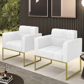 Você está procurando um Kit Poltrona que combine com a sua Sala De Estar, recepção ou seu quarto, que ofereça conforto e qualidade? Então você vai adorar a Poltrona Base Industrial Dourado Kit 2 Ana Sintético PU Branco, da Ibiza!