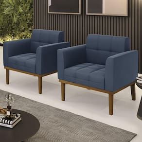 Você está procurando um Kit Poltrona que combine com a sua Sala De Estar, recepção ou seu quarto, que ofereça conforto e qualidade? Então você vai adorar a Poltrona Base Madeira Castanho Kit 2 Ana Suede Azul Marinho, da Ibiza!
