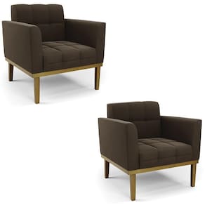 Poltrona Base Madeira Castanho Kit 2 Ana Suede Marrom