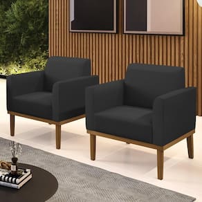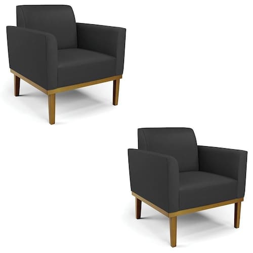 Você está procurando um Kit Poltrona que combine com a sua Sala De Estar, recepção ou seu quarto, que ofereça conforto e qualidade? Então você vai adorar a Poltrona Base Madeira Castanho Kit 2 Maressa Sintético Preto, da Ibiza!