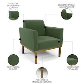 Você está procurando um Kit Poltrona que combine com a sua Sala De Estar, recepção ou seu quarto, que ofereça conforto e qualidade? Então você vai adorar a Poltrona Base Madeira Castanho Kit 2 Maressa Suede Verde, da Ibiza!