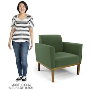 A Poltrona Decorativa é revestida em Suede, que é durável e fácil de limpar, e ainda valoriza o design da poltrona. Os braços e encosto são confortáveis em espuma D-18, já o assento é com espuma D-26 de alta densidade, que garante um assento firme e aconchegante, ideal para relaxar após um dia cansativo. A base em madeira de eucalipto é um charme à parte, que confere um toque Rústico e sofisticado à peça. São 2 poltronas com estrutura resistente que suporta até 120 kg cada. A montagem é muito simples, pois a poltrona já vem pronta, bastando apenas fixar a base com os parafusos que acompanham o produto. A limpeza também é muito prática, pois basta utilizar um pano limpo e levemente úmido, sem produtos abrasivos, para manter a sua poltrona sempre em bom estado. Sem dúvidas a Poltrona Para Sala vai transformar seu ambiente, deixando mais confortável e estiloso!