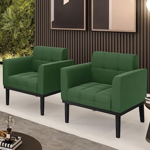Você está procurando um Kit Poltrona que combine com a sua Sala De Estar, recepção ou seu quarto, que ofereça conforto e qualidade? Então você vai adorar a Poltrona Base Madeira Preto Kit 2 Ana Suede Verde, da Ibiza!