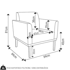 A Poltrona Decorativa é revestida em Linho, que é durável e fácil de limpar, e ainda valoriza o design da poltrona. Os braços e encosto são confortáveis em espuma D-18, já o assento é com espuma D-26 de alta densidade, que garante um assento firme e aconchegante, ideal para relaxar após um dia cansativo. A base em madeira de eucalipto é um charme à parte, que confere um toque Rústico e sofisticado à peça. São 2 poltronas com estrutura resistente que suporta até 120 kg cada. A montagem é muito simples, pois a poltrona já vem pronta, bastando apenas fixar a base com os parafusos que acompanham o produto. A limpeza também é muito prática, pois basta utilizar um pano limpo e levemente úmido, sem produtos abrasivos, para manter a sua poltrona sempre em bom estado. Sem dúvidas a Poltrona Para Sala vai transformar seu ambiente, deixando mais confortável e estiloso!