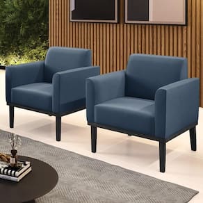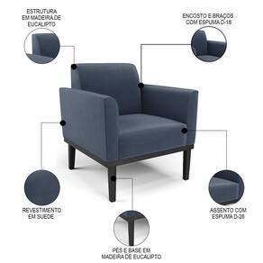 Você está procurando um Kit Poltrona que combine com a sua Sala De Estar, recepção ou seu quarto, que ofereça conforto e qualidade? Então você vai adorar a Poltrona Base Madeira Preto Kit 2 Maressa Suede Azul Marinho, da Ibiza!