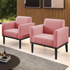 Você está procurando um Kit Poltrona que combine com a sua Sala De Estar, recepção ou seu quarto, que ofereça conforto e qualidade? Então você vai adorar a Poltrona Base Madeira Preto Kit 2 Maressa Suede Rosê, da Ibiza!