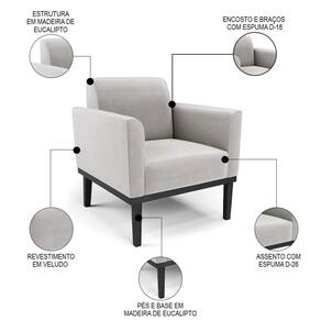 Você está procurando um Kit Poltrona que combine com a sua Sala De Estar, recepção ou seu quarto, que ofereça conforto e qualidade? Então você vai adorar a Poltrona Base Madeira Preto Kit 2 Maressa Veludo Cinza, da Ibiza!