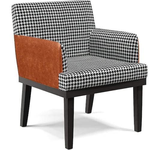 As possibilidades para sua disposição são infinitas, seja para escritório, recepção, sala de espera ou estar, entre outras, seu conforto e beleza transformarão sua decoração por inteiro. Cabe mencionar também o revestimento com padrão em Pied Poule, que contrastam perfeitamente com os pés na cor Preto dando uma sutil delicadeza à peça e garante o destaque que ela merece. Adquira já a sua!