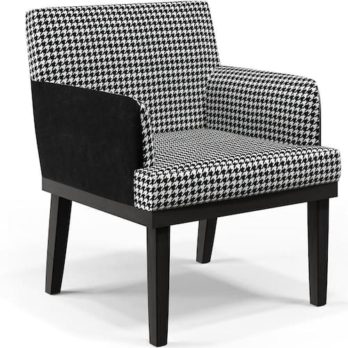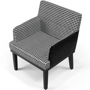As possibilidades para sua disposição são infinitas, seja para escritório, recepção, sala de espera ou estar, entre outras, seu conforto e beleza transformarão sua decoração por inteiro. Cabe mencionar também o revestimento com padrão em Pied Poule, que contrastam perfeitamente com os pés na cor Preto dando uma sutil delicadeza à peça e garante o destaque que ela merece. Adquira já a sua!