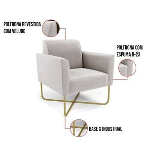 Todo mundo gosta de um ambiente bem decorado, e se for novidade melhor ainda não é mesmo? A DRossi, além de entregar beleza, qualidade e confiança aos clientes, ela dispõe das melhores opções em produtos, disponíveis no mercado! Se você quer um produto sofisticado, opte pela Poltrona Marisa. Ela dispõe de um tom lindo no Cinza, uma cor leve, neutra e delicada que combina com qualquer estilo de decoração. Esta mobília fica perfeita na sala, escritório, quarto, varanda coberta e onde mais preferir! Sua estrutura é feita em madeira reforçada de eucalipto proveniente de reflorestamento. No assento/encosto contém um revestimento no tecido Veludo, com estofamento em espuma prorelax D-23, garantindo maior conforto ao usuário. A sustentação da peça é dada pela Base X Industrial Dourado, garantindo uma resistência melhor, para relaxar o dia todo com mais comodidade. A Poltrona Marisa é ideal, para dar aquele realce que seu ambiente precisa. Tenho certeza que, esse móvel é a melhor compra que você irá fazer. Garanta já sua poltrona e se acomode da melhor maneira possível!
