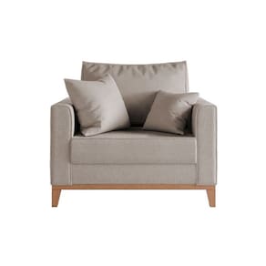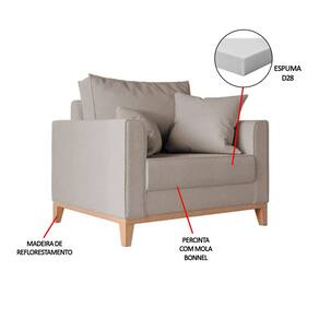Poltrona Beny Amamentação com 2 Almofadas Base em Madeira Maciça Tecido Linho Bege