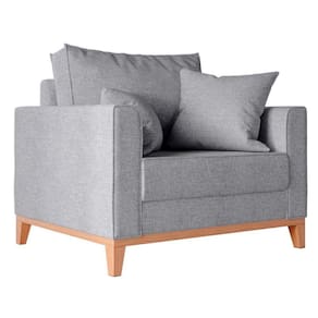 Poltrona Beny Com Pés E Base De Madeira - élpis Móveis Linho Cinza