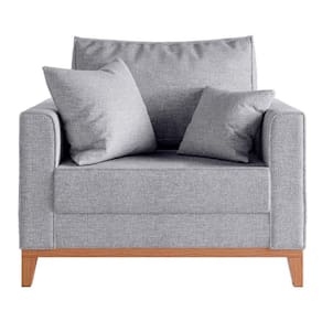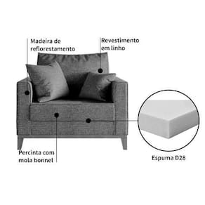 Poltrona Beny Com Pés E Base De Madeira Élpis Móveis Linho Cinza