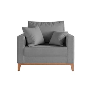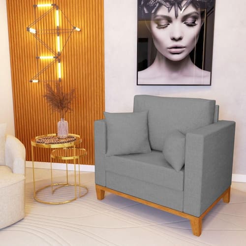 IMAGENS MERAMENTE ILUSTRATIVAS REALIZADO EDIÇÃO, PODENDO HAVER UMA PEQUENA VARIAÇÃO DE COR DEPENDENDO DE CADA TELA OU MONITOR.Poltrona Beny Decorativa com 2 Almofadas Linho Cinza Base em Madeira MaciÃa